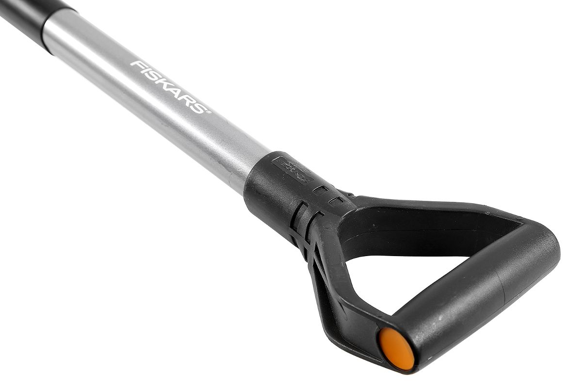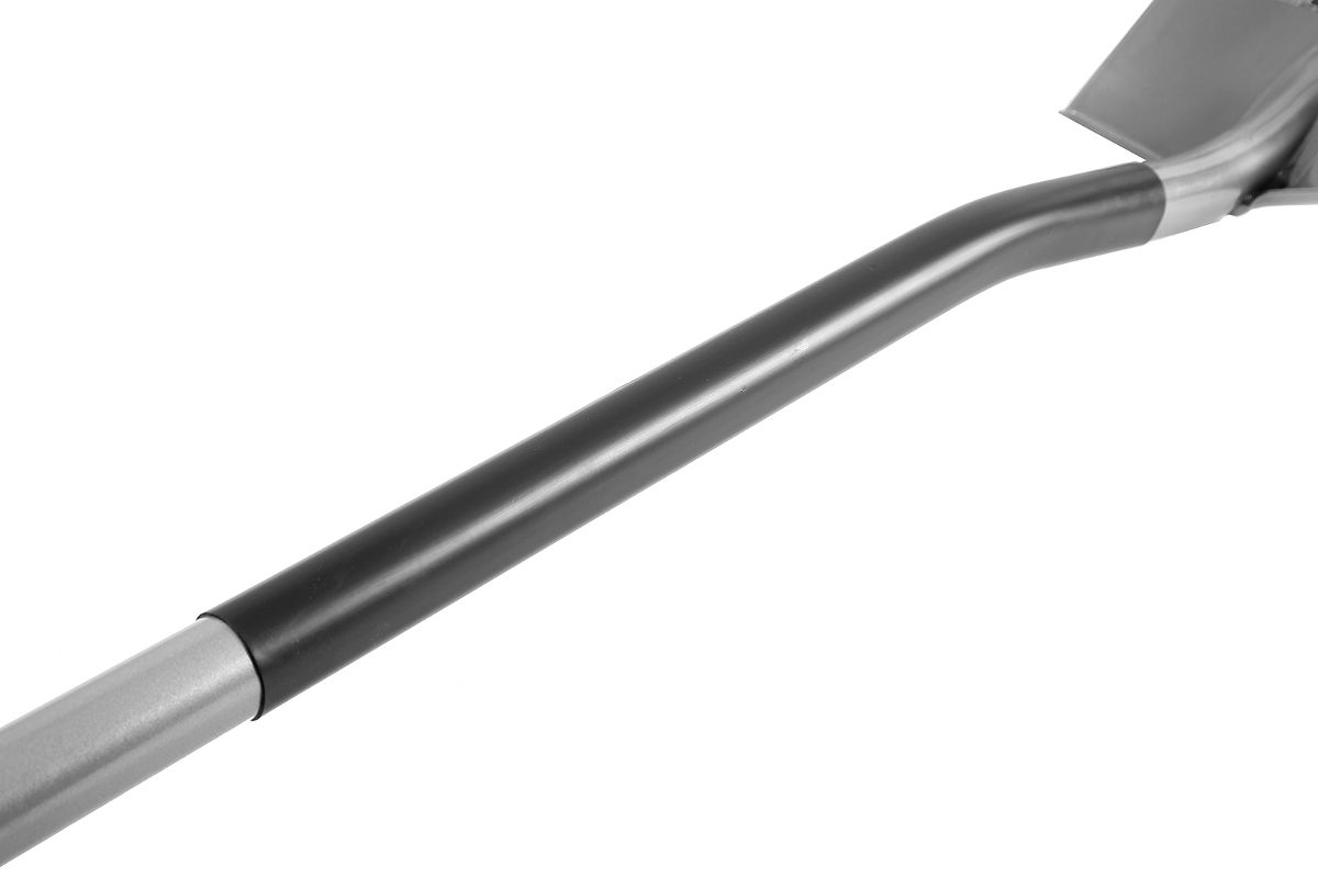 Насадка изготовлена из высокопрочной стали и приварена к черенку, поэтому этой лопате под силу самые сложные работы.
