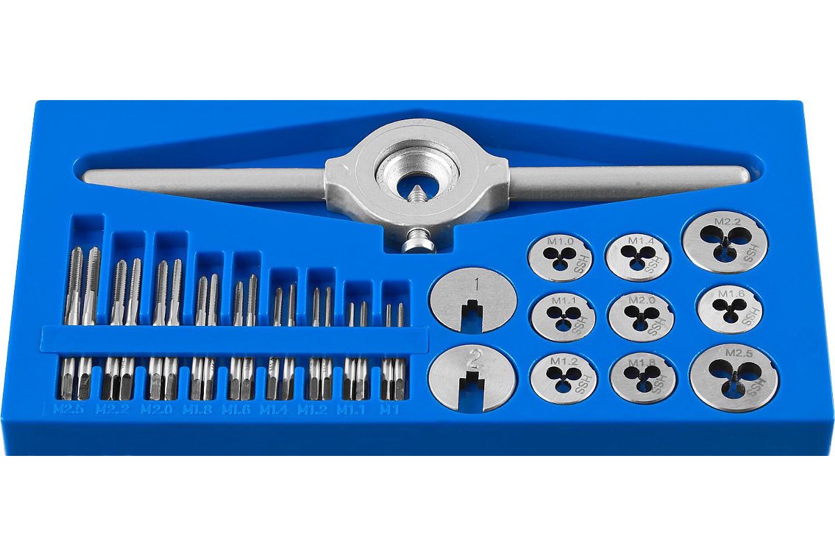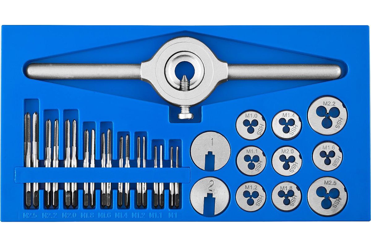 Набор метчиков и плашек предназначен для получения внешней и внутренней резьбы. Все инструменты изготовлены из высококачественной стали, которая отличается высокой контактной прочностью и износостойкостью.