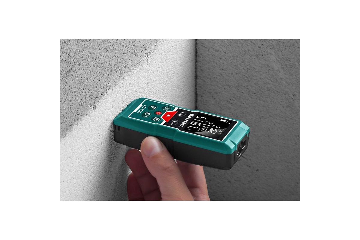 Дальномер лазерный KRAFTOOL 34765, предназначен для быстрого и простого измерения линейных расстояний, площадей и объемов в помещении и на улице