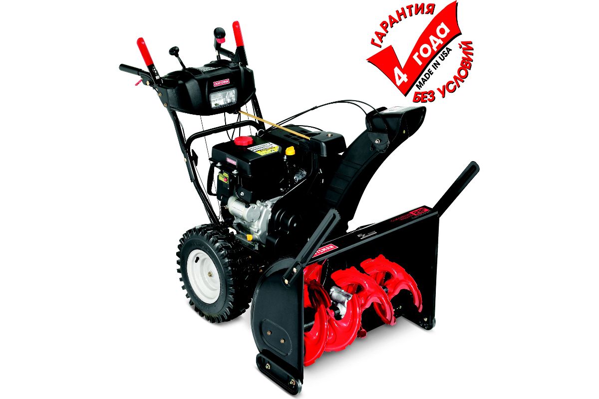 Бензиновый снегоуборщик используется для очистки от слежавшегося снега и льда больших и средних территорий. Зазубренный шнек измельчает снег и подает его на крыльчатку, которая выбрасывает снег через разгрузочный желоб. Для возможности разворота на месте предусмотрена разблокировка любого колеса (система power steering). Рычаг переключения скоростей расположен на рабочей панели. Менять направление выброса снега можно без остановки работы двигателя и шнека. За счет конструкции и размеров желоба увеличена дальность выброса снега. Направляющие снегозаборника изготовлены из стали. Для надежного удержания агрегата в любую погоду рукоятки прорезинены.